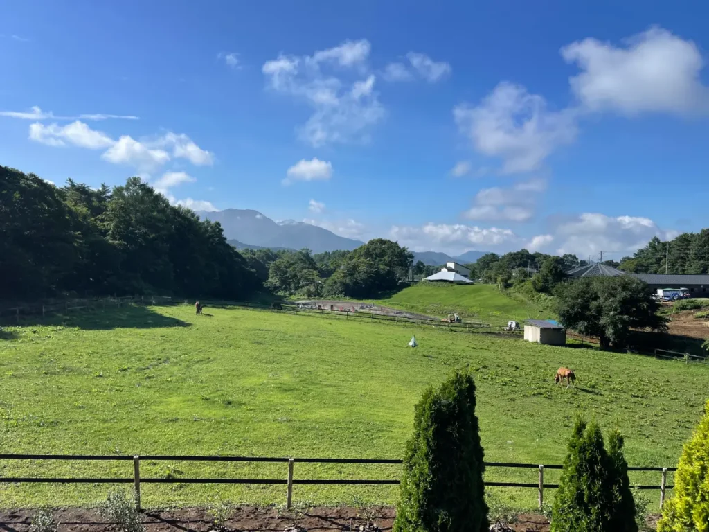 トレッキングの後は、八ヶ岳山麓ののどかな風景を楽しみながらのドライブ。この後は何度かお邪魔しているペンションへ向かいます。