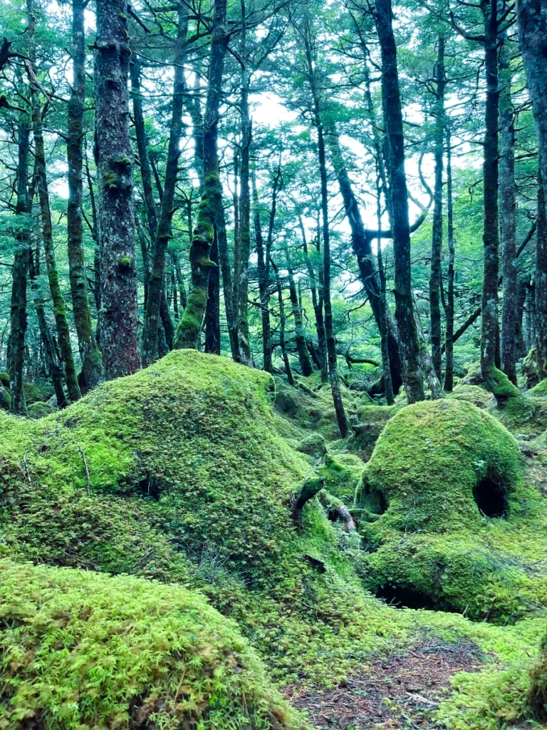 白駒の池周辺の森には、約500種類もの苔が生息しているらしいです。ルーペを持って苔の観察をしている人もたくさんいるくらい、奥が深い世界。どこを見ても緑がキラキラしていて、ジブリの世界って感じが好きです〜。