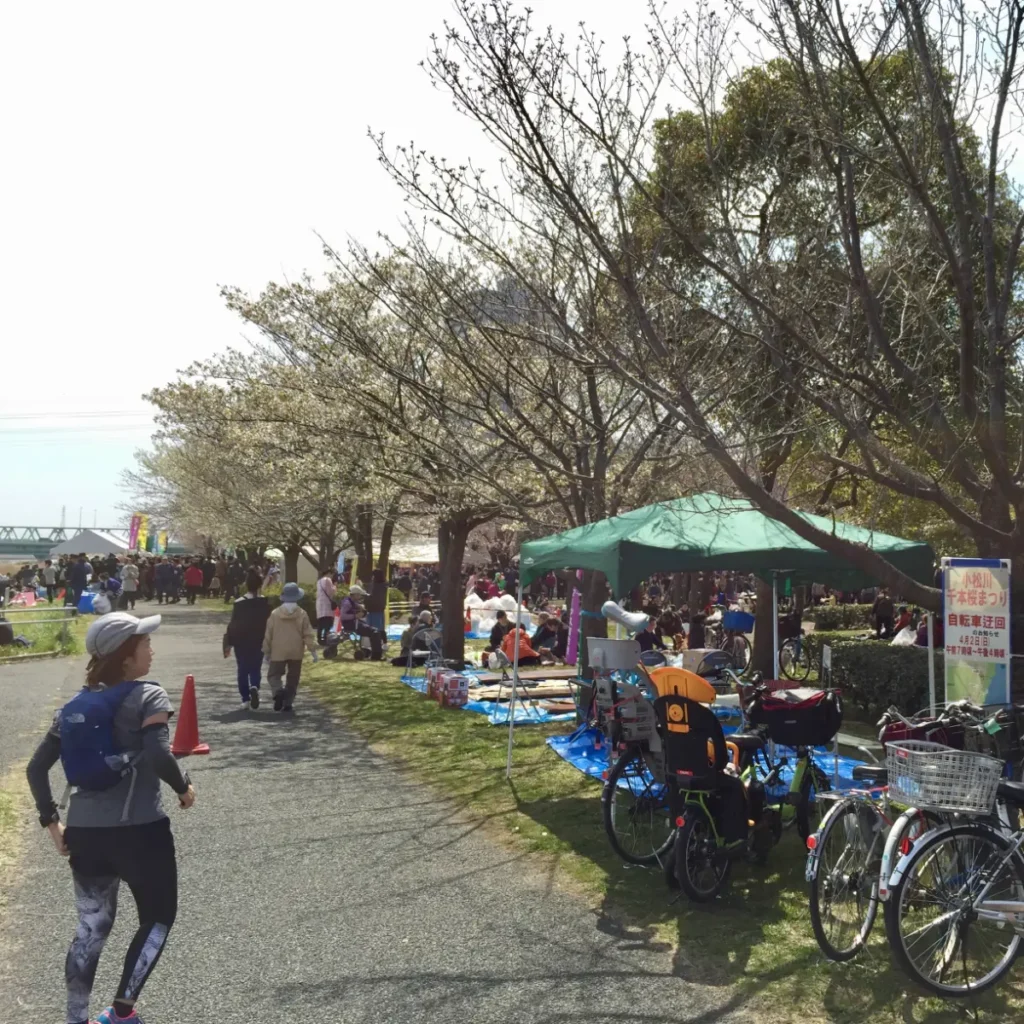 「千本桜ってところがあるんだ。すっごいから観に行こうよ〜」って妻を荒川コースに誘う口実を作ってランしてきました。家から10kmほどの距離にある小松川千本桜は私にとって大好きな場所です。本当に1000本あるんじゃないかっていう規模です。小松川千本桜は荒川スーパー堤防整備の一環で桜が植栽されたと聞いています。南北約2キロの桜並木は圧巻です!荒川と旧中川に挟まれたところに大島公園というすごく広い公園があって、毎年春には「小松川千本桜まつり」が開催されているみたいです。ランを始めて6年目で過去5年は一人でみてました。毎年この季節になるとここまでランするのが楽しみで楽しみで。今年は妻のタイミングも合ったのでやっと一緒に観れてよかったです。