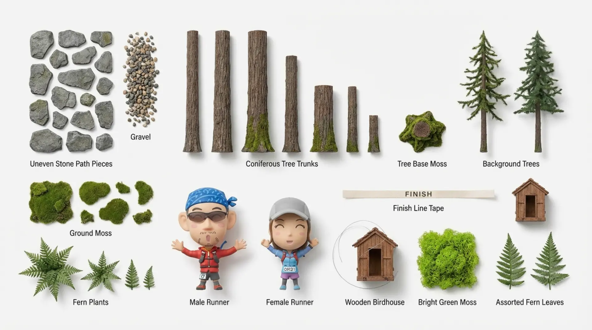 熊野古道トレランをジオラマ再現イメージ!杉林の奥行きや苔むした石畳の質感は必見。二人三脚でゴールするフィギュアの表情も注目!